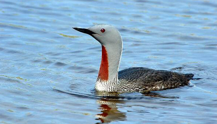 sides of neck (Black-throated usually entirely dark-necked from rear), and a