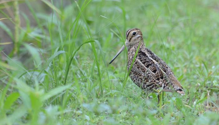 stripes on upperparts not so prominent as on Snipe; and different voice. When seen