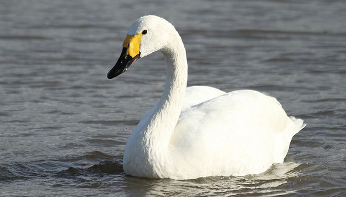 (recalling Whooper, but yellow not reaching in front of nostril, and black