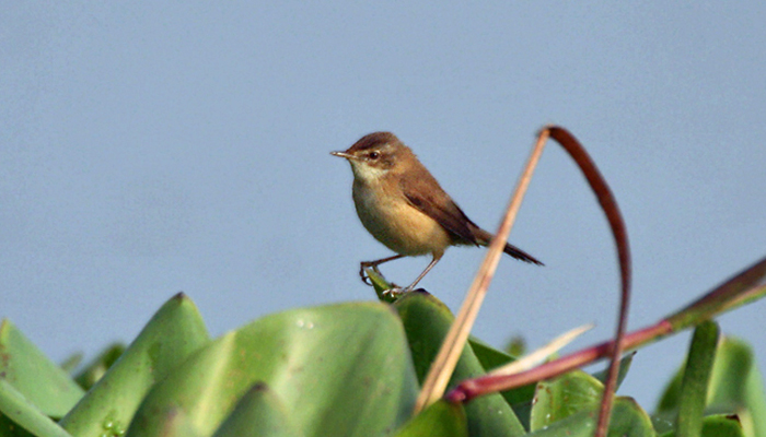 vertical stems. Nest is made of tightly woven grass stems, strips of leaves and