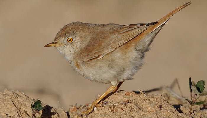 Whitethroat but is much smaller, has yellow eye and paler yellowish legs.
