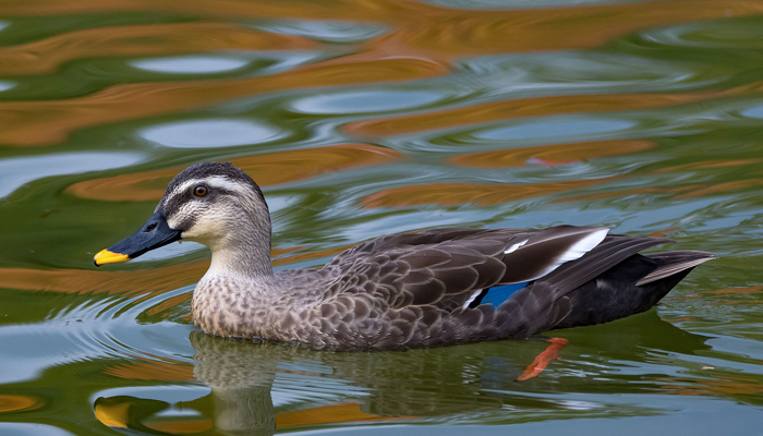 English: Spot-billed Duck, Spot-billed Grey DuckRussian: Чёрная крякваGerman: FleckschnabelenteFrench: Canard a bec tacheteMongolian: Зэрлэгшир нугасJapanese: カリガモ (Karu-gamo)
