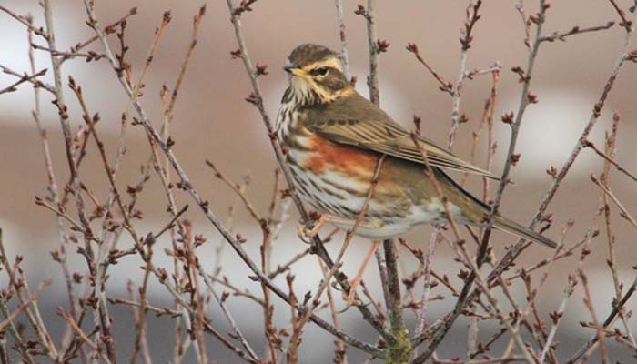 English: Redwing, Red-winged Thrush Russian: Белобровик Mongolian: Цагаанхөмсөгт хөөндэйGerman: Rotdrossel French: Grive mauvis