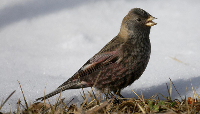 English: Asian Rosy Finch, Arctic Rosy Finch Russian: Сибирский вьюрок Mongolian: Занхгар зангалай, Бухын дух бужиргаGerman: Rosenbauch-Chneegimpel French: Roselin brun Japanese: ハギマシコ (Hagi-mashiko)