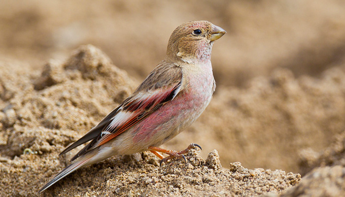 Size of Trumpeter Finch, and very like that species, but has slightly smaller