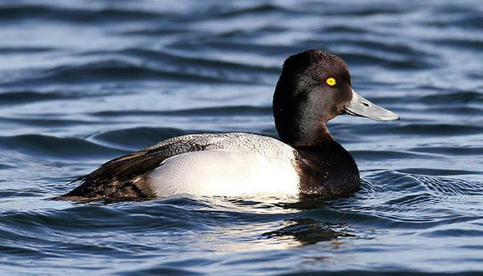 swimming. ♂ distinctive. Other plumage similar to Tufted Duck, with similar