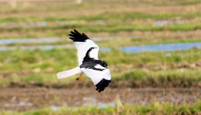 English: Pied Harrier Russian: Пегий луньGerman: Scheckweihe, ElsterweiheFrench: Busard pieMongolian: Алаг хулд, Саарал цагаан элэгтJapanese: マダラチュウヒ(Madara-chuhi)