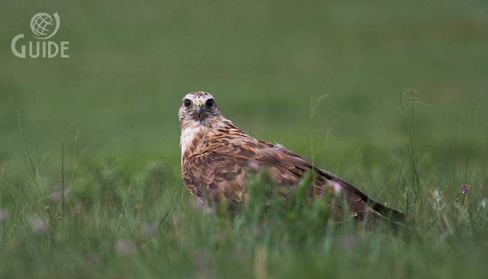 or in very loose groups in small numbers in open areas with voles and gerbils.