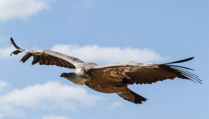 Griffon Vulture. They forage on carrion on the ground with Cinereous Vultures