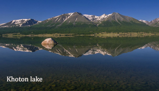 June. Khurgan Lake has total of 20 small and large islands. There is larch
