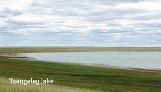 rushes along its northern shore. Tsengeleg is the lake located in the plain